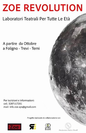 A partire dal 2002 ogni anno a Foligno, ma dal 2025 con ampliamento anche a Trevi e Terni, i laboratori teatrali di Zoe Aps sono aperti a partecipanti di tutte le età (a partire dagli 8 anni).