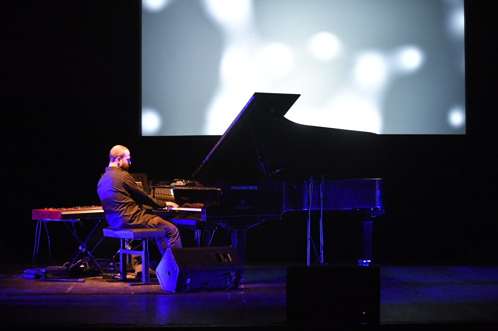 Scrittura, drammaturgia e voce narrante (italiano o inglese) di Malcolm Angelucci. Musiche e pianoforte solo di Giovanni Guidi